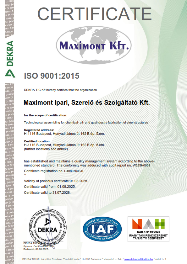 Main Office in Hungary: 1116 Budapest, Hunyadi János út 162. B. ép. 5. em. Branch in Hungary: 8000 Székesfehérvár, Kapos utca 2 Phone: +3614370447 Fax: +3614370448 E-mail: info@maximont.hu